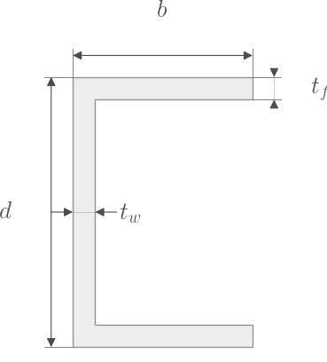 Channel# class xsection.library.Channel(d, b, tf=None, tw=None, k=None, ho=None, sf=0, centroid=None, mesh_scale=0.5, **kwds)# A channel (C) section. Attributes d Depth of the section. bf tf Thickness of the flange. tw Thickness of the web. k